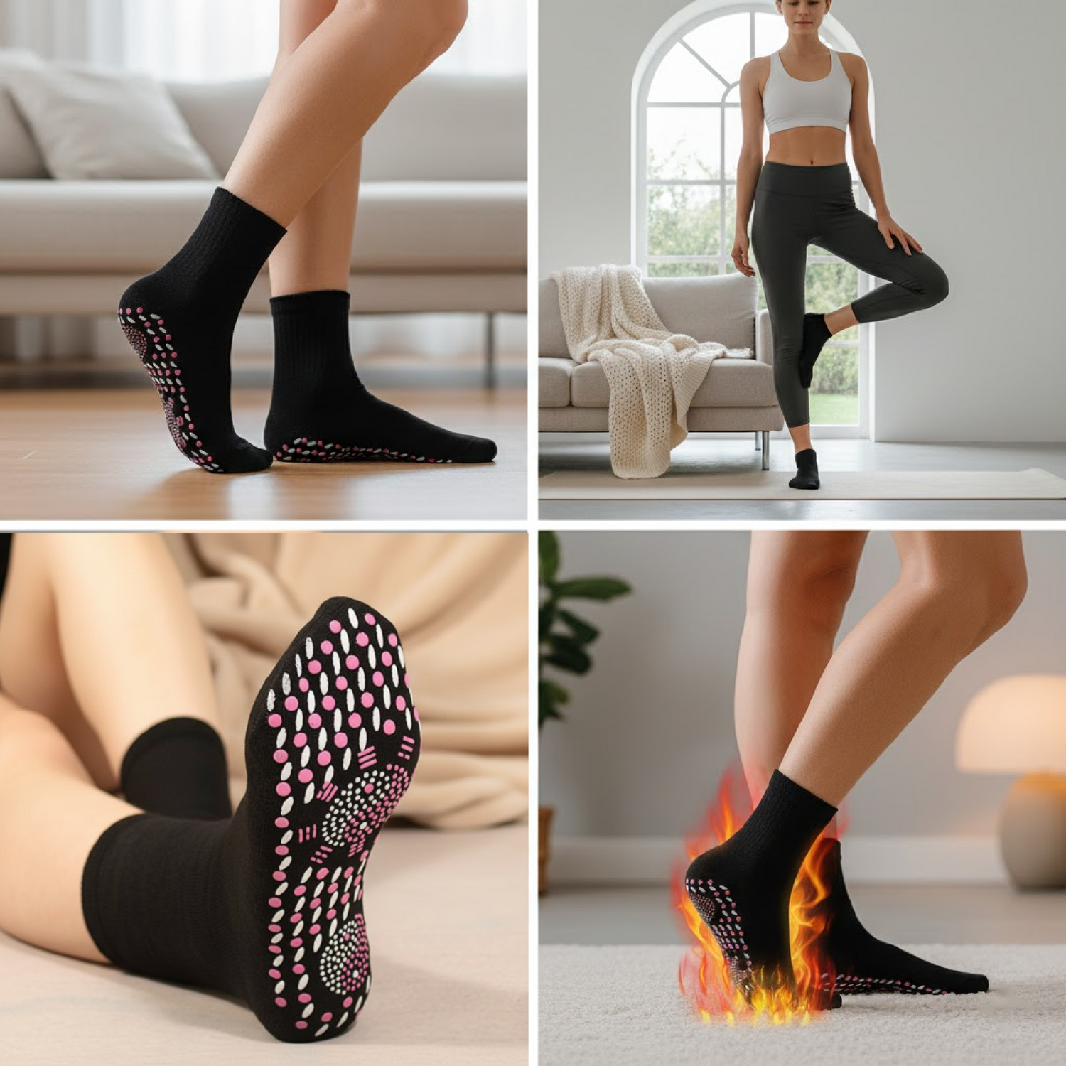 Mantenga sus pies calientes, cómodos y seguros con estos calcetines autocalentables y antideslizantes que favorecen la circulación y reducen la fatiga. Perfectos para usar en casa, hacer yoga o como calzado diario.